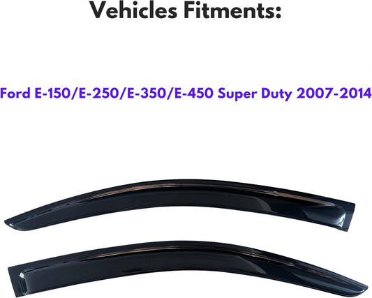 KPY Window Visor Compatible with 2007-2014 Ford E150 E250 E350 E450 Super Duty, Rain Guard Window Vent Deflectors Tape-On Style, 2007 2008 2009 2010 2011 2012 2013 2014