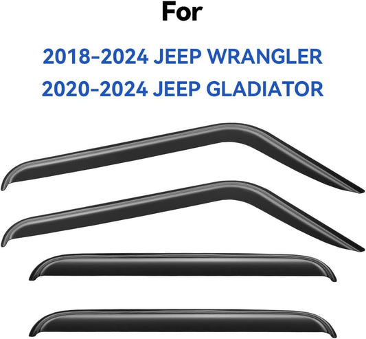 Window Visors Rain Guards for 2018-2025 Jeep Wrangler JL, Out-Channel Window Vent Wind Deflectors Visors Shades for 2020-2025 Jeep Gladiator