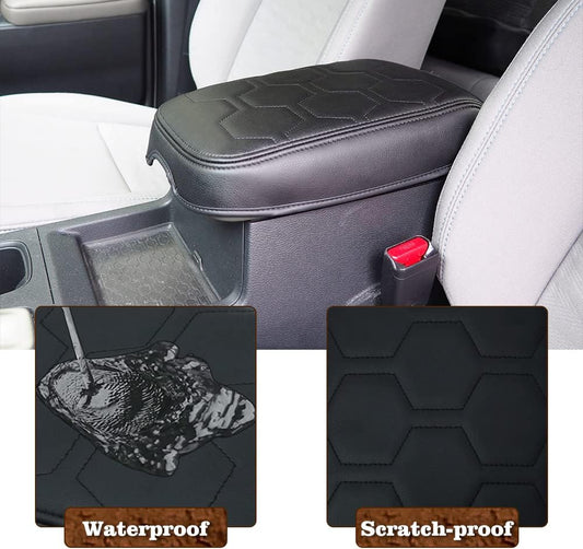 Muslogy Center Console Armrest Cover Compatible with Ford F150 2021-2024 2025 Comfort Armrest Pad Arm Rest Cushion Vegan Leather Protector 1-Inch Extra Thick(Bucket Seat ONLY)