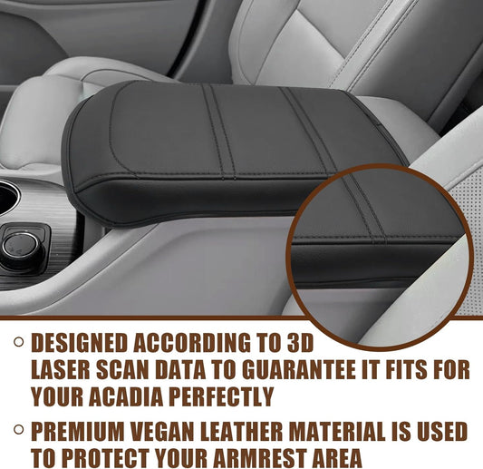 Muslogy for Acadia 2017-2023 Center Console Pad Armrest Cover Vegan Leather Cushion Pad Accessories Armrest Lid Protector Extra Soft Compatible with GMC Acadia 2023 2022-2017 (Black/Black Trim)