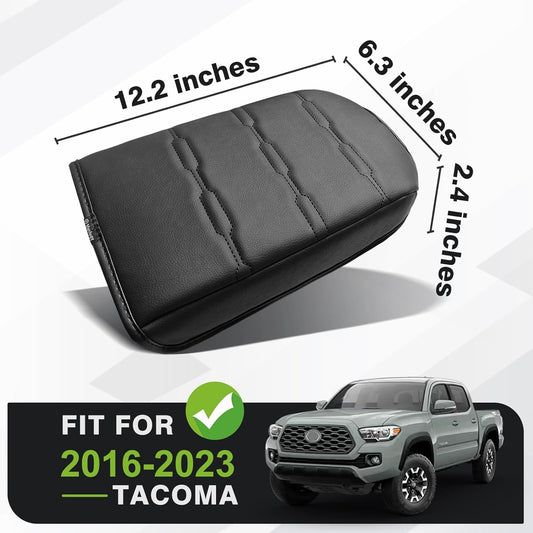 Muslogy Center Console Armrest Cover Compatible with Toyota Tacoma 2016-2023 Comfort Armrest Pad Arm Rest Cushion Vegan Leather Protector Regular Thick