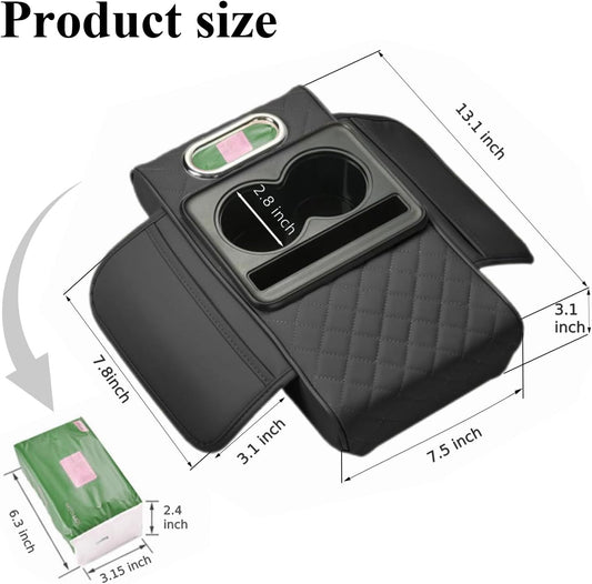 Car arm Rest Cover Pad, 5-in-1 Center Console Cover with Cup Holder, Tissue Box Slot, Mobile Phone Storage Slot, Suitable for Most Car Console Organizer, 13.8''x7.1''x3.0'', (Black)
