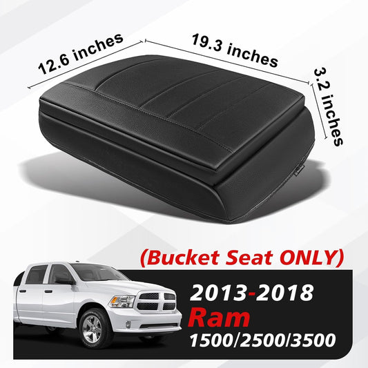 Muslogy Center Console Armrest Cover Compatible with Dodge Ram1500/2500/3500 2013-2018 Comfort Armrest Pad Arm Rest Cushion Vegan Leather Protector 1-Inch Extra Thick(Bucket Seat ONLY)