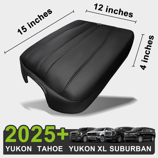 Muslogy Center Console Armrest Cover Compatible with 2025 2026 GMC Yukon/Yukon XL & Chevy Tahoe/Suburban Comfort Armrest Pad Arm Rest Cushion Vegan Leather Protector Regular Thick