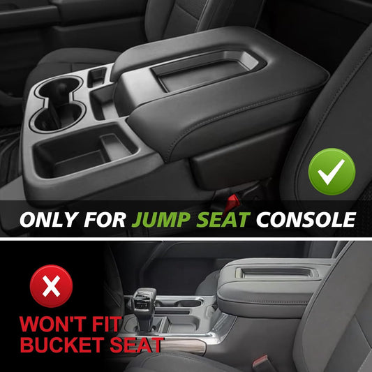 Muslogy Center Console Armrest Cover Compatible with Ford F-150 F150 2015-2024 2025 Comfort Armrest Pad Arm Rest Cushion Vegan Leather Protector 1-Inch Extra Thick(Jump Seat ONLY)