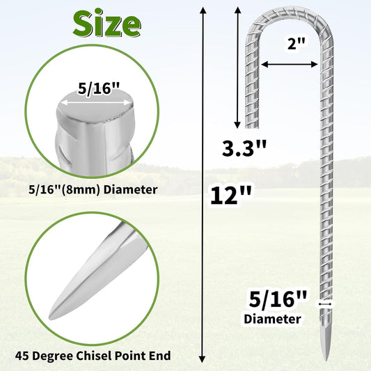 12 Inch Rebar Stakes J Hook Ground Stakes 32-Pack Heavy Duty Galvanized Chain Link Fence Stakes Metal Tent Stakes for Outdoor Lawn Decorations Inflatables Canopy Swing Set