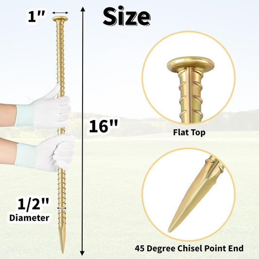 16 Inch Rebar Stakes 1/2 Inch Diameter Galvanized Steel Ground Anchors Heavy Duty Anchoring Spikes for Speed Bump, Parking Curb and Tent (10 Pack)