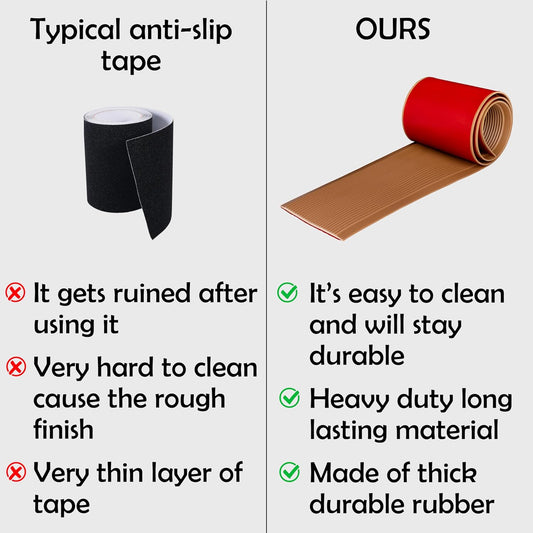Rubber Bond 4x36in Anti Slip Stair Treads (5-Pack) - Waterproof Outdoor/Indoor Heavy Duty Non-Skid Tape for Stairs - Adhesive Rubber Grip Strips for Steps & Ramps - Brown