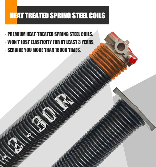 Pair of 2"Garage Door Torsion Springs Set with Non-Slip Winding Bars, Electrophoretic Coated (0.225X2"X30")