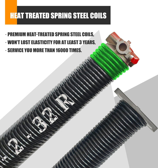Pair of 2"Garage Door Torsion Springs Set with Non-Slip Winding Bars, Electrophoretic Coated (0.218X2"X32")
