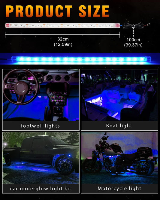 Qasim LED Strip Lights Car Boat Truck Interior Exterior Lighting, Waterproof Auto Front Grill Ambient Lighting, Golf Cart Motorcycles Underglow LED Light Blue 32CM 12V-Pack of 6