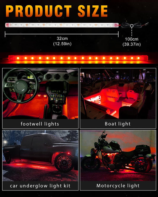Qasim Car LED Strip Light 12V Red 12.5''/32CM for Golf Cart Underglow Boats Vehicle Automotive Truck Van Motorcycle Footwell Lighting IP67 Waterproof, Pack of 6