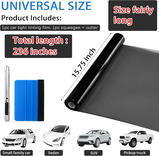 Pangda 16" x20ft Long Headlight Taillight Vinyl Tint Wrap Roll 40% VLT Self Adhesive Tail Light Tint Fog Lights Films with Scraper Vinyl Film Sticker Roll Car Accessories(Light Black)