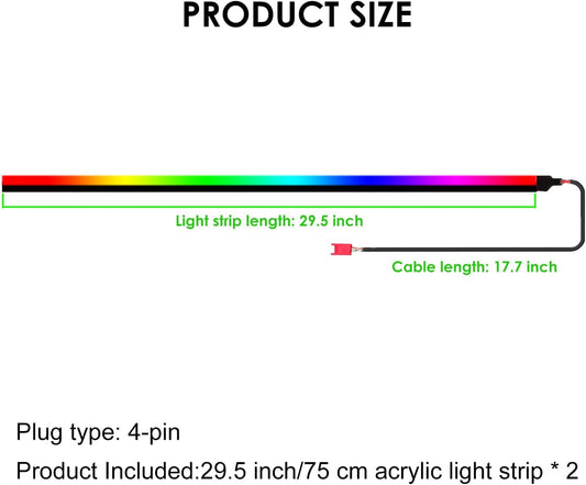 Dreamcolor Acrylic Interior Car Lights, 2 Piece 29.5inch/75cm 128 Colorful Car LED Strip Light RGB Fiber Optic Rainbow Ambient Lighting bar, Universal Decoration Dynamic Atmosphere Neon Lights