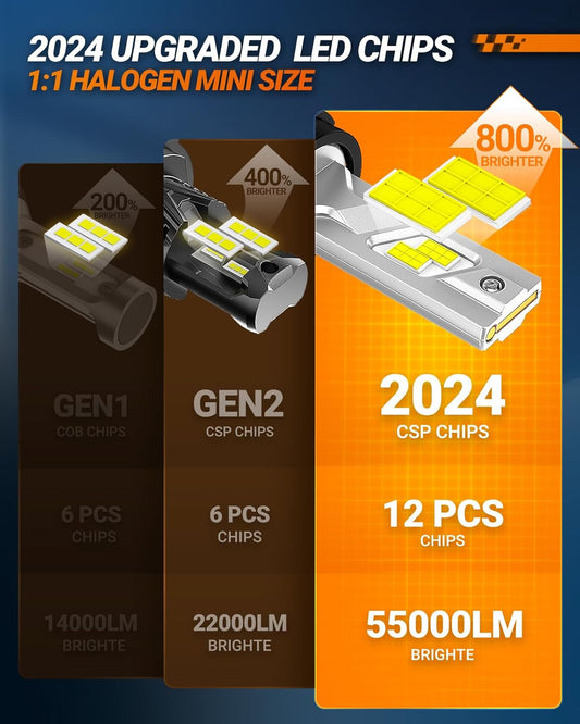 9006/HB4 Light Bulbs, 800% Super Bright 6500K Cool White HB4 Lights, 1:1 Mini Size Easy to Install Bulbs with 5 Years Lifespan, IP68 Waterproof, Pack of 2