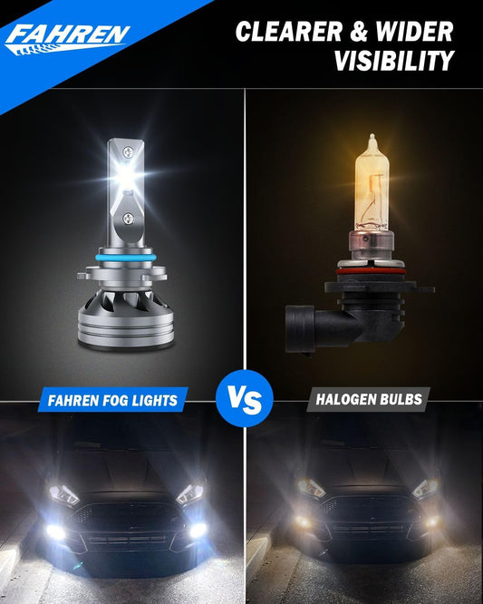 FAHREN 9005/HB3 9006/HB4 πππ Bulbs Combo, πππ% ππ«π’π π‘πππ« 9006 9005 Fog Light Bulbs with 6500K White High-Performance, 1:1 Halogen Size, Non-Polarity, Pack of 4