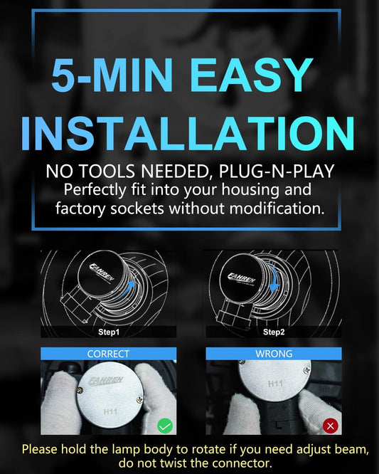 FAHREN H11 9005 Light Bulbs Combo, 60000LM Super Brighter 6500K H9 H8 HB3 Driving Light Bulbs with Fan, Plug and Play, Off-Road Use or Fog Light, Pack of 4