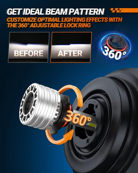 SEALIGHT 9007 HB5 Bulbs, X4I 9007 HB5 Powersport Light with Adjustable Lock Ring, Cooling Fan, 55,000LM Super Bright, Plug and Play, Fog Light, Pack of 2