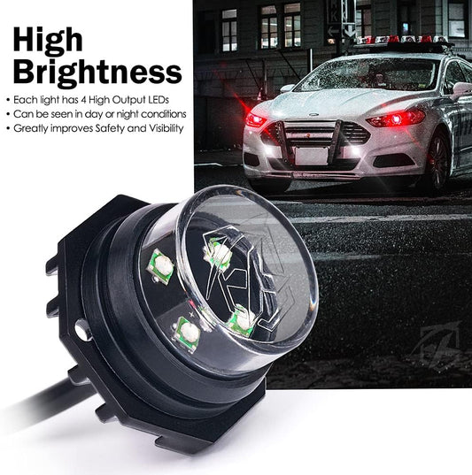 Xprite White Red LED Hideaway Strobe Lights Kit, 20 Flashing Patterns w/Control Panel Headlights Taillights Fog Light Interior Mounting, for Emergency Vehicles Firefighter Cars Trucks SUV 4PCS