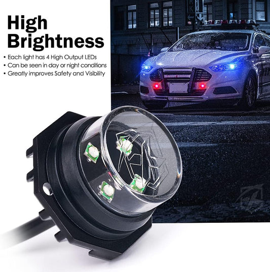 Xprite Red Blue LED Hideaway Strobe Police Lights Kit, 20 Flashing Patterns w/Control Panel for Headlights Taillights Hazard Warning Mounting, for Emergency Vehicles Volunteer Cop Cars Trucks, 4PCS