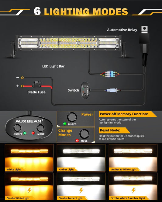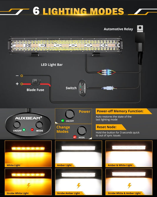 Auxbeam 22 Inch LED Light Bar, 120W 6 Modes Amber White Strobe Fog Lights, Yellow Spot Flood Memory Reset Function Offroad Driving Work Ditch Light for Truck Car ATV