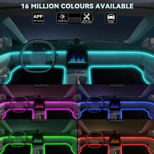 Interior Car LED Strip Lights, Acrylic LED Lights for Car with Dynamic Dreamcolor Chasing, Ambient Lighting Kits Music Sync Wireless APP and RF Remote Control (6 in 1)