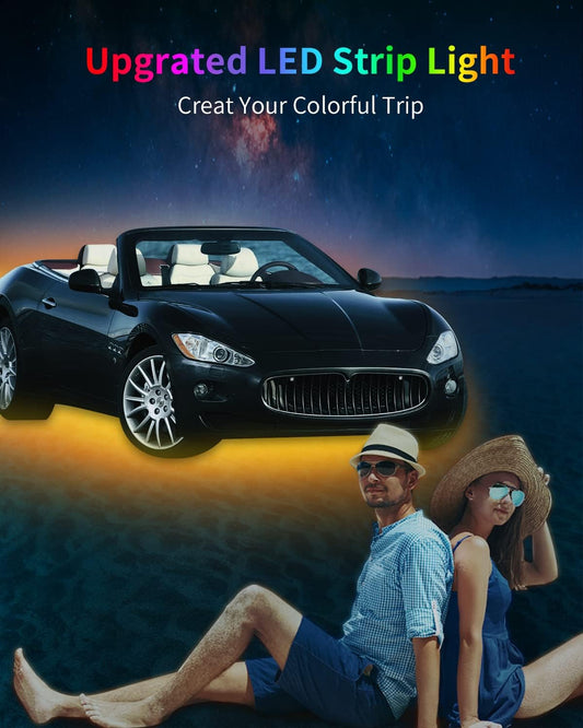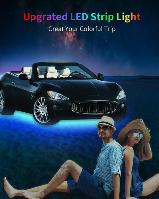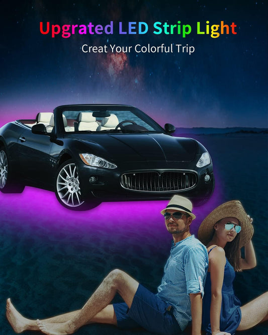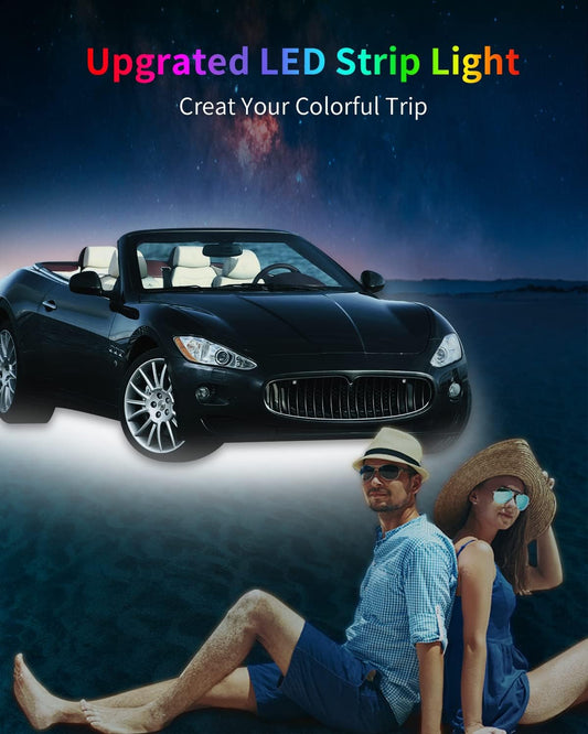 12V Car LED Strip Light,24inch Car Interior Light Strip IP68 Waterproof Cuttable for Car Motorcycles Boat Golf Cart Truck Cargo Home Decoration with Strong Nano Tape,(4PCS)