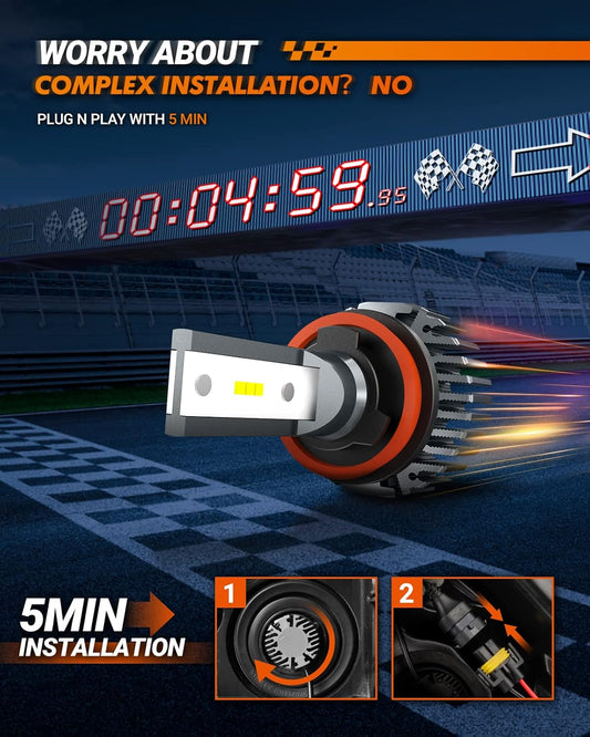 FAHREN Upgraded H11/H9/H8 Light Bulb, 40000LM Ultra-Bright Real 1:1 Mini Size H11, 6500K Cool White H11 light, Quick Install No Adapter Needed, Pack of 2