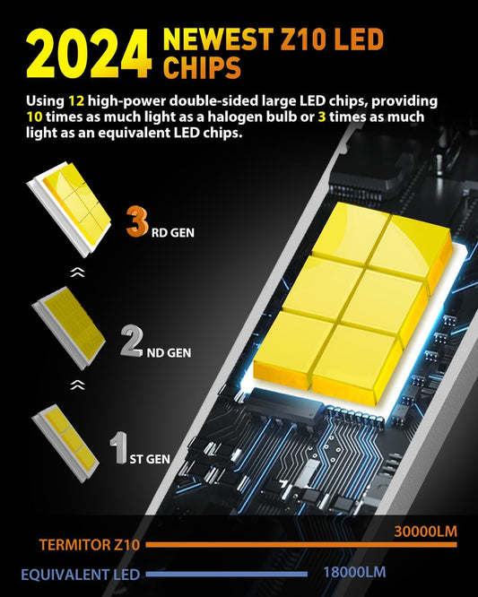 SEALIGHT H13 Bulb compatible 9008, 30000LM 6500K White Light, 1:1 Design with Cooling Fan, 60000+ Hours Lifspan Plug and Play, 2 Pack