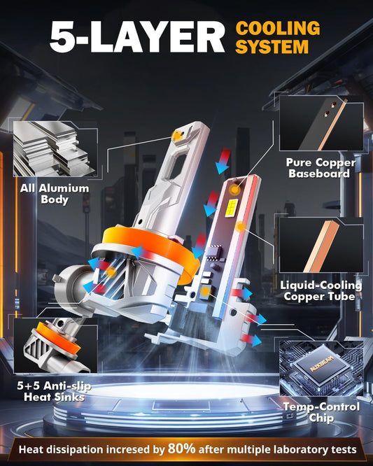 SEALIGHT 9005 H11 Bulbs Combo, 72000LM 800% Brightness 9005/HB3 High H11 High Low Beam Bulbs, 6000K Cool White with Silent Fan, IP68, 360° Adjustable, L2 Powersports Headlight Bulbs, Pack of 4