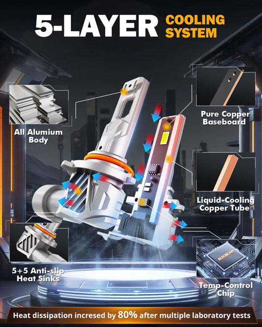 Auxbeam 9005 9006 Fog Light, Super Bright 1:1 Mini Size 6500K White, 9005 9006 Fanless Replacement For Off-road Use Or Powersports, Plug and Play, Pack of 2