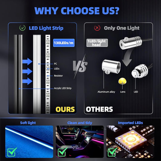 AMKI Dreamcolor Acrylic Interior LED Strip Light, Neon Light with Wireless APP Control, 10 in 1 Sub-Control Ambient Light Kit Accessories with DIY and Music Mode, 16 Million Colors