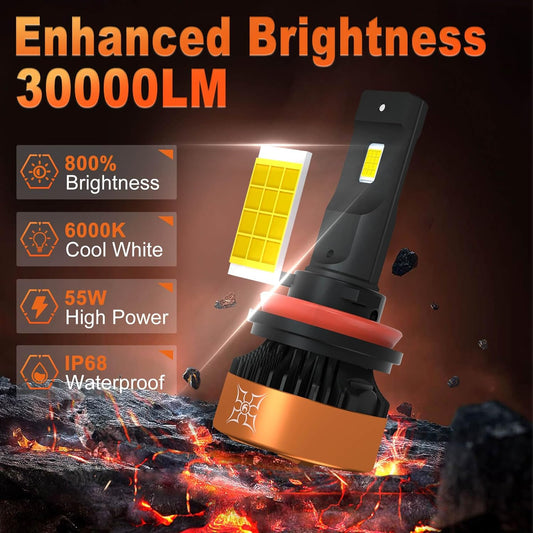 HIKARI WINGS H11/H8/H9 LED Fog light, 30000LM Pure White 6000K LED Bulbs, Plug & Play IP68 Waterproof Pack of 2