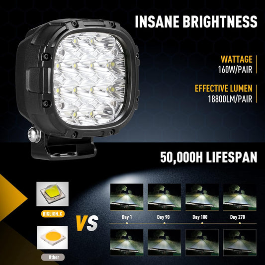 BIGLION.X 4 Inch Pair 160W 18800LM Amber Fog Lights Offroad Pods Super Bright Driving Spot With Wiring Harness IP68 12V 24V for Pickup Trucks SUV ATV UTV