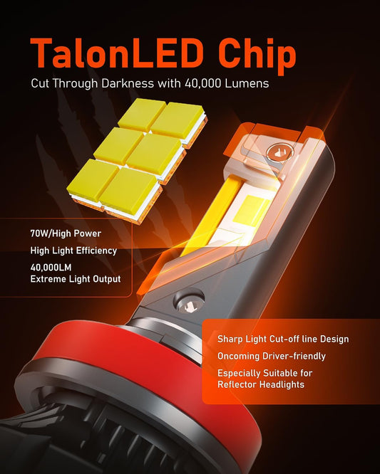 LUXSTER Punisher 80,000LM H11 9005 LED Bulbs Combo, Ultra-Bright TalonLED Chips, Easy Plug-N-Play Installation, 6000K Pure White, IP68 Waterproof, Pack of 4