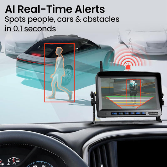 RV Backup Camera, Vehicle Backup Camera with AI Detection, 1080P Backup Cameras, 7'' Waterproof Wireless Backup Camera with DVR Recording & Night Vision for Car, Van, SUV, Truck, Trailer
