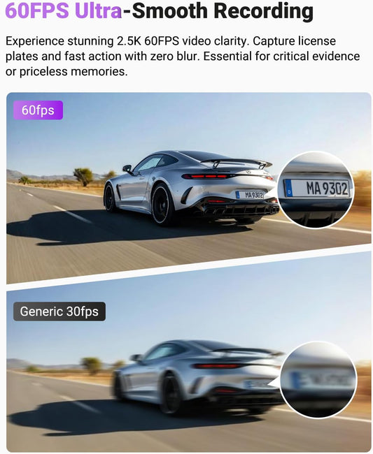 Dash Cam Front and Rear, 2.5K+1080P Dual Dash Camera for Cars with 32GB SD Card, 2.45 inch IPS Screen, 2 Mounting Ways, Night Vision, WDR, Accident Lock, Loop Recording, Parking Monitor