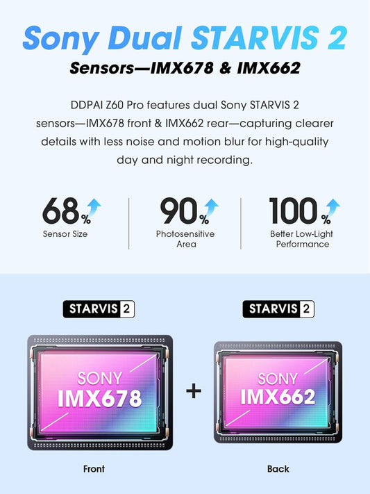 DDPAI Dash Cam Front and Rear, Dual STARVIS 2 IMX678 IMX662 Dashcam, 4K+1080P Dual HDR Car Camera with 32G eMMC, 3K/60FPS, 4G LTE Support, 5G WiFi GPS, 3" IPS, Night Vision, 24H Parking Mode, Z60 Pro