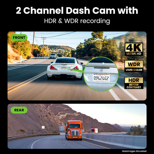 Real 4K 30fps Dash Cam Front and Rear, 2 Channel HDR with Top-Level Sensor, 5.8GHz Wi-Fi GPS G-Sensor 3.3'' Big IPS, Super Night Vision, Parking Mode, Dash Camera for Cars with App, Support 512GB Max