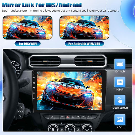 Double Din Car Stereo Radio Receiver, 10.1” 2.5D Curved HD Touch Screen Head Unit Multimedia Player, Support Rear View Camera&Android iOS Mirror Link Dual USB Input+License Plate Camera