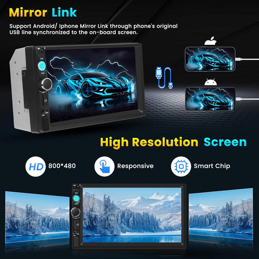 Double Din Car Radio with Bluetooth iOS/Android Mirror Link, 7 Inch Touch Screen Car Stereo 2 Din with Backup Camera Bluetooth Hands-Free FM Radio USB EQ AUX TF Steering Wheel Control