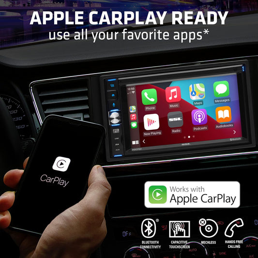 Sound Storm Laboratories DDCP62-R Apple CarPlay Car Multimedia Player - Double-Din, 6.2 Inch Capacitive Touchscreen, Bluetooth, USB, SD, Aux AV in, No CD DVD, AM/FM, Backup Camera Included