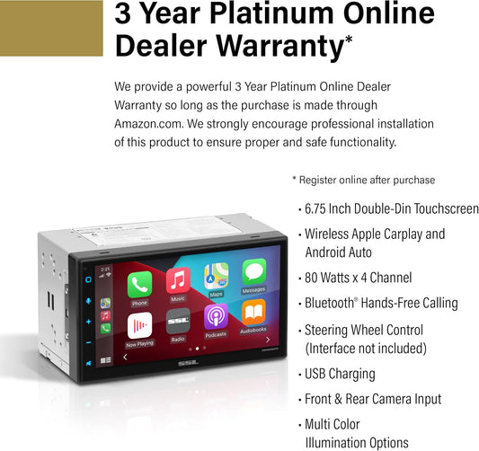 Sound Storm Laboratories DD988ACP Car Audio Stereo System – Apple CarPlay Android Auto, Double-Din 6.75 Inch Capacitive Touchscreen, Bluetooth Audio and Hands-Free Calling, No CD Player