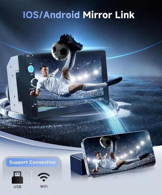 [Upgrade Wireless] 7" Double Din Car Radio with Wireless Apple CarPlay and Android Auto, Bluetooth 5.3 Car Play, 240W 4.2-Channel Audio Output, Mirror Link, Backup Camera, AM/FM Car Stereo
