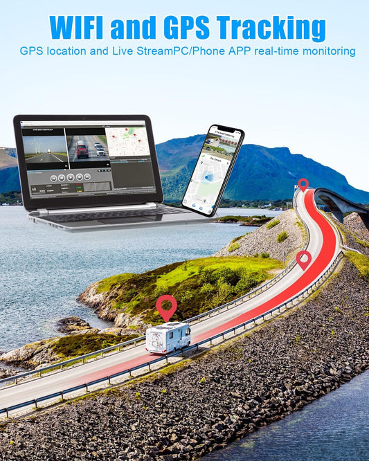 RV Backup Camera System AI WiFi GPS 7 inch Touch Screen Monitor Vehicle Recording with 4 Pieces 1080P Rear Side View Waterproof Camera Live View on APP/Web/PC for Camper RV Truck Trailer Tractor Fleet