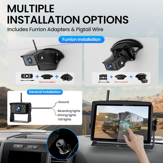 Wireless Backup Camera for RV Truck Trailer Camper Bus 5th Wheel 3 Rear/Side View Cameras 1080P 4-Split 7" Screen with Adapter for Furrion Pre-Wired Night Vision IP69 Waterproof 170° Wide View Angle