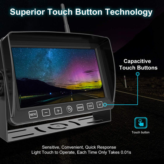 RV Backup Camera, Vehicle Backup Cameras with 7-Inch Touchscreen Monitor, Wireless HD 1080P, 4-Channel System, IR Night Vision, Waterproof Rearview Camera for RV, Truck, Van, SUV, Trailer