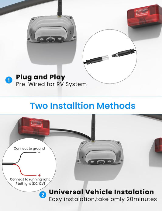RV Backup Camera Wireless with 7" 1080P Monitor, for Furrion Pre-Wired RV, 4-Channel Split Screen System, Loop Recording, IR Night Vision, Wide Rear View Camera for Truck, Trailer, Camper