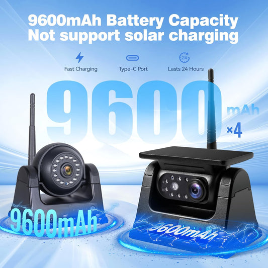 1080P 7" Magnetic Wireless RV Backup Camera System, 2 Rear Cameras + 2 Side Cameras for Reversing/Monitoring Trailer Camper, 1080P DVR Monitor, 4x9600mAh Waterproof IR Night Vision RV Cameras