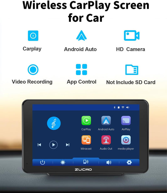 Carplay Screen for Car, 7" Portable Wireless Car Stereo for Apple Carplay & Android Auto,Touchscreen CarPlay Dash Cam,Audio Receivers W/Mirror Link/Rear Camera/Bluetooth/Navigation/AUX/Voice Control